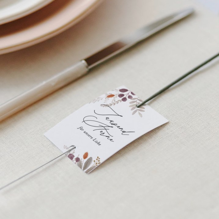 Unser Tipp: Legen Sie die Wunderkerzen mit diesen Etiketten am jeweiligen Platz des Gastes auf den Hochzeitstischen aus!