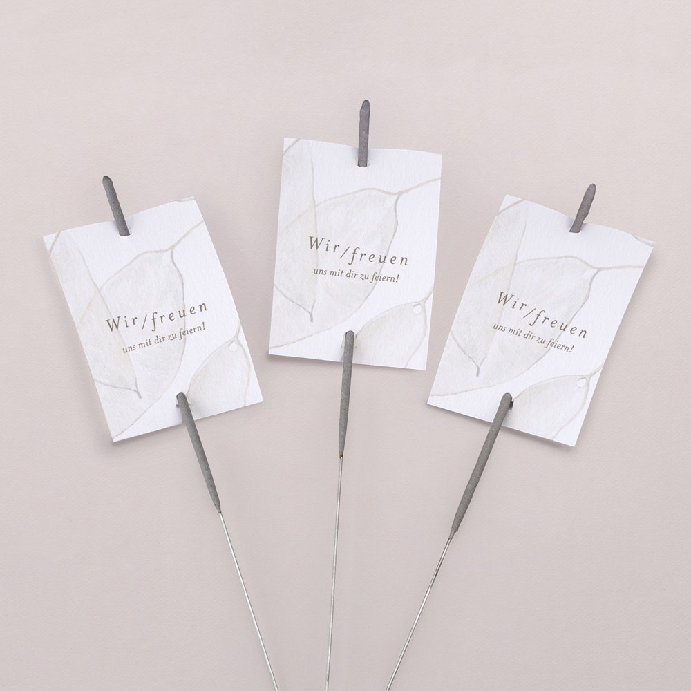 Unser Tipp: Legen Sie die Wunderkerzen mit diesen Etiketten am jeweiligen Platz des Gastes auf den Hochzeitstischen aus!