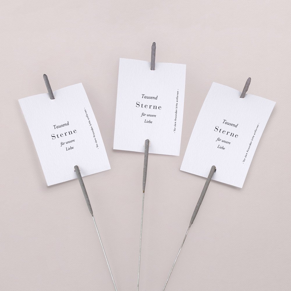 Unser Tipp: Legen Sie die Wunderkerzen mit diesen Etiketten am jeweiligen Platz des Gastes auf den Hochzeitstischen aus!