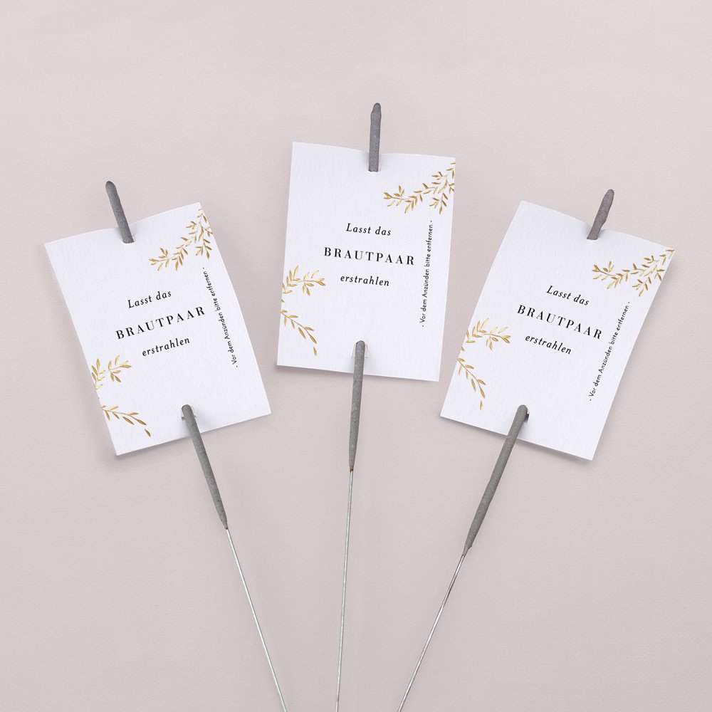 Lassen Sie die Funken sprühen! Schmücken Sie Ihre Wunderkerzen mit diesen personalisierbaren Etiketten und laden Sie Ihre Gäste zu einem ganz besonderen Moment ein: gemeinsam die Wunderkerzen anzünden, wenn das Brautpaar den Festsaal betritt, zum Brauttanz oder beim Anschneiden der Hochzeitstorte.