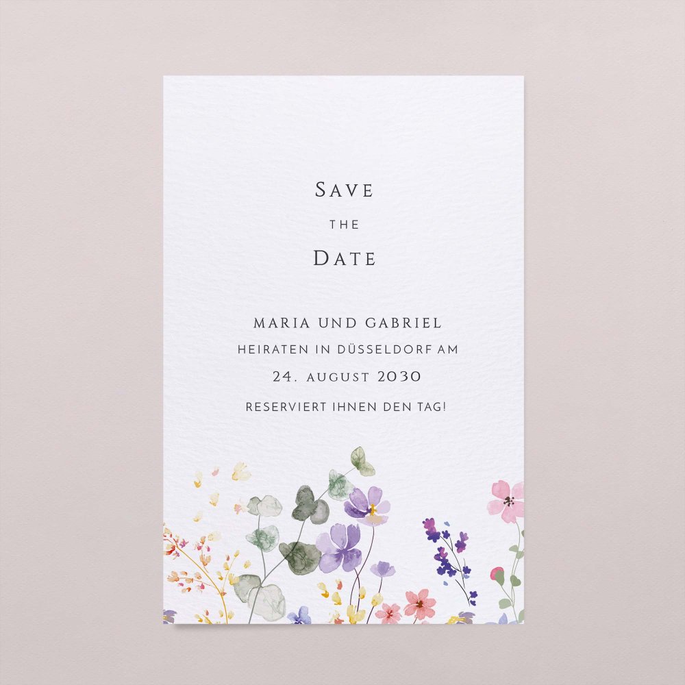 Die Save-the-Date Karten sind ausschließlich vorderseitig personalisierbar, die Rückseite bleibt klassisch bei allen Modellen weiß.