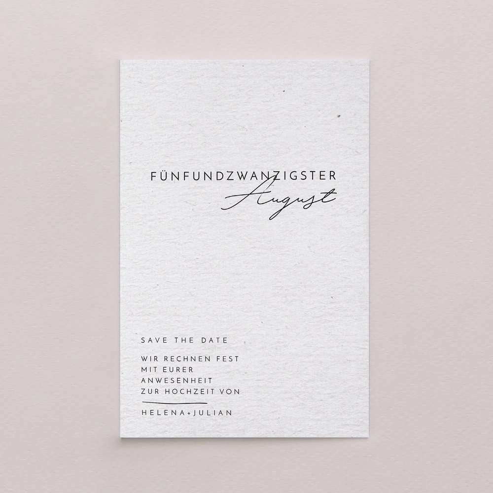 Die Save-the-Date Karten sind ausschließlich vorderseitig personalisierbar, die Rückseite bleibt klassisch bei allen Modellen weiß.