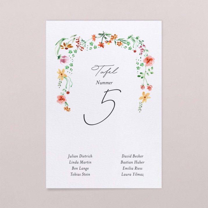 Wir empfehlen eine Karte pro Tisch. Am Eingang ausgelegt zeigen Sie Ihren Gästen auf eine einfache aber charmante Art, wo und mit welchen Tischnachbarn sie das Vergnügen haben.