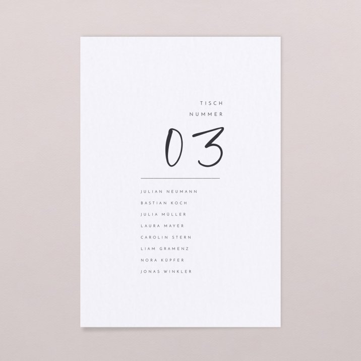 Wir empfehlen eine Karte pro Tisch. Am Eingang ausgelegt zeigen Sie Ihren Gästen auf eine einfache aber charmante Art, wo und mit welchen Tischnachbarn sie das Vergnügen haben.