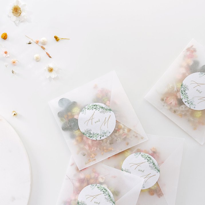 Mit diesen hübschen kleinen Hochzeitsaufklebern im Design Ihrer Karten beweisen Sie Liebe zum Detail!