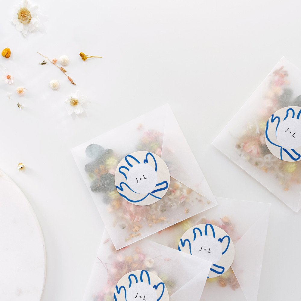 Mit diesen hübschen kleinen Hochzeitsaufklebern im Design Ihrer Karten beweisen Sie Liebe zum Detail!