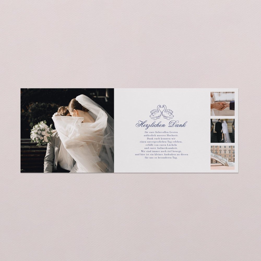 Bedanken Sie sich bei Ihrer Familie und Ihren Freunden mit dieser hübschen Dankeskarte zur Hochzeit. Die Karte im Querformat kann auf der Vorder- und Rückseite mit Ihrem Foto und Ihrer persönlichen Nachricht personalisiert werden. Ein zartes Geschenk als Erinnerung an diesen schönen Tag.