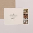 Diese Danksagung hat es in sich: die Klappkarte im Hochformat beinhaltet einen Fotostreifen mit Platz für 3 Ihrer schönsten Hochzeitsfotos.