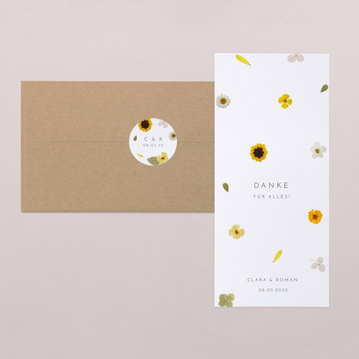 Bedanken Sie sich bei Ihren Hochzeitsgästen mit einer persönlich gestalteten Dankeskarte.