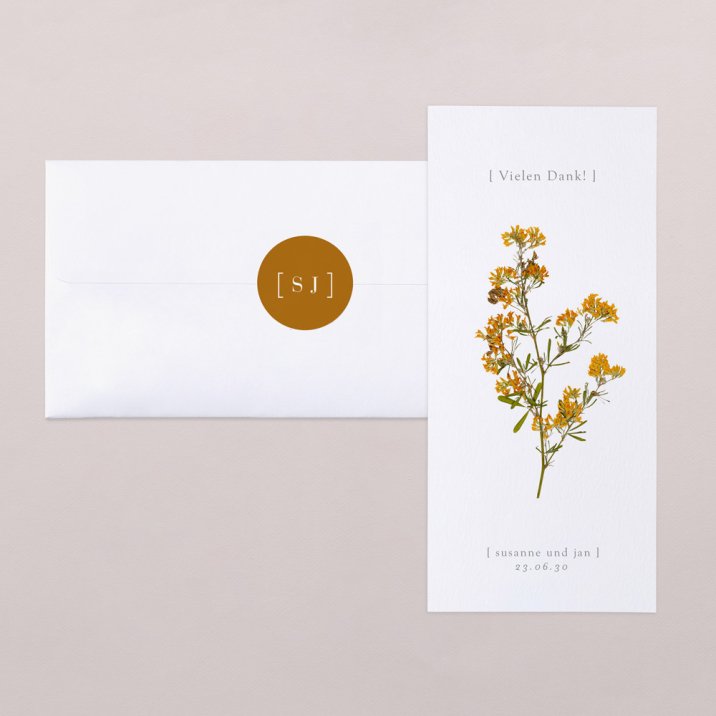 Bedanken Sie sich bei Ihren Hochzeitsgästen mit einer persönlich gestalteten Dankeskarte.
