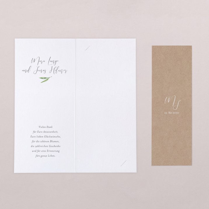 Bedanken Sie sich bei Ihren Hochzeitsgästen mit einer persönlich gestalteten Dankeskarte.