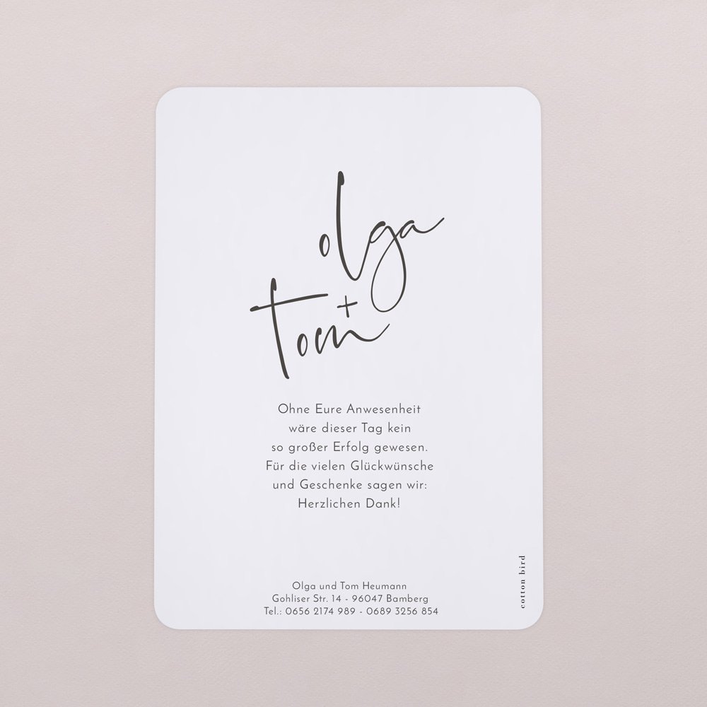 Eine große Karte für ein großes Dankeschön: Bedanken Sie sich bei Ihren Gästen für die Glückwünsche und Geschenke zur Hochzeit mit einer großformatigen Danksagungskarte.