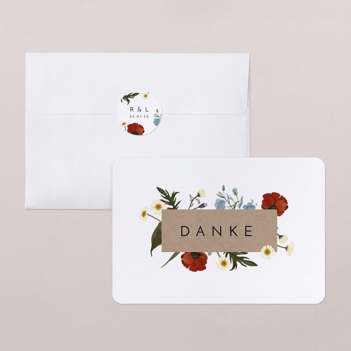 Eine große Karte für ein großes Dankeschön: Bedanken Sie sich bei Ihren Gästen für die Glückwünsche und Geschenke zur Hochzeit mit einer großformatigen Danksagungskarte.