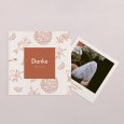 Diese Dankeskarte zur Hochzeit lässt sich auf der Vorder- und Rückseite mit Ihrer kurzen Nachricht und einem Foto personalisieren. Das Samentütchen können Sie selbst mit Hilfe der dafür vorgesehenen Ausstanzungen auf der Karte befestigen.