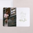 Diese Dankeskarte zur Hochzeit lässt sich auf der Vorder- und Rückseite mit Ihrer kurzen Nachricht und einem Foto personalisieren. Das Samentütchen können Sie selbst mit Hilfe der dafür vorgesehenen Ausstanzungen auf der Karte befestigen.