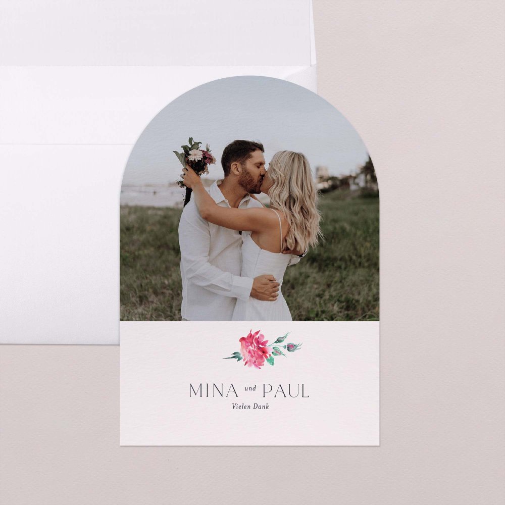 Bedanken Sie sich bei Familie und Freunden für diesen wundervollen Tag mit dieser Dankeskarte zur Hochzeit in Form eines Torbogens. Diese besondere Karte kann auf der Vorder- und Rückseite mit Ihrem Foto und einer kurzen Botschaft selbst gestaltet werden und wird Ihre Gäste an die kostbaren Momente des vergangenen Glücks erinnern.