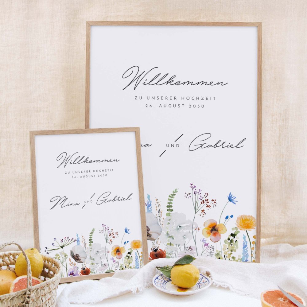 Unser Dekotipp: Für einen echten Blickfang empfehlen wir Ihnen, das Hochzeitsschild in einem Bilderrahmen mit Passepartout aufzustellen oder mit einem Posterhalter aufzuhängen. Ein kleiner Trick mit großer Wirkung!