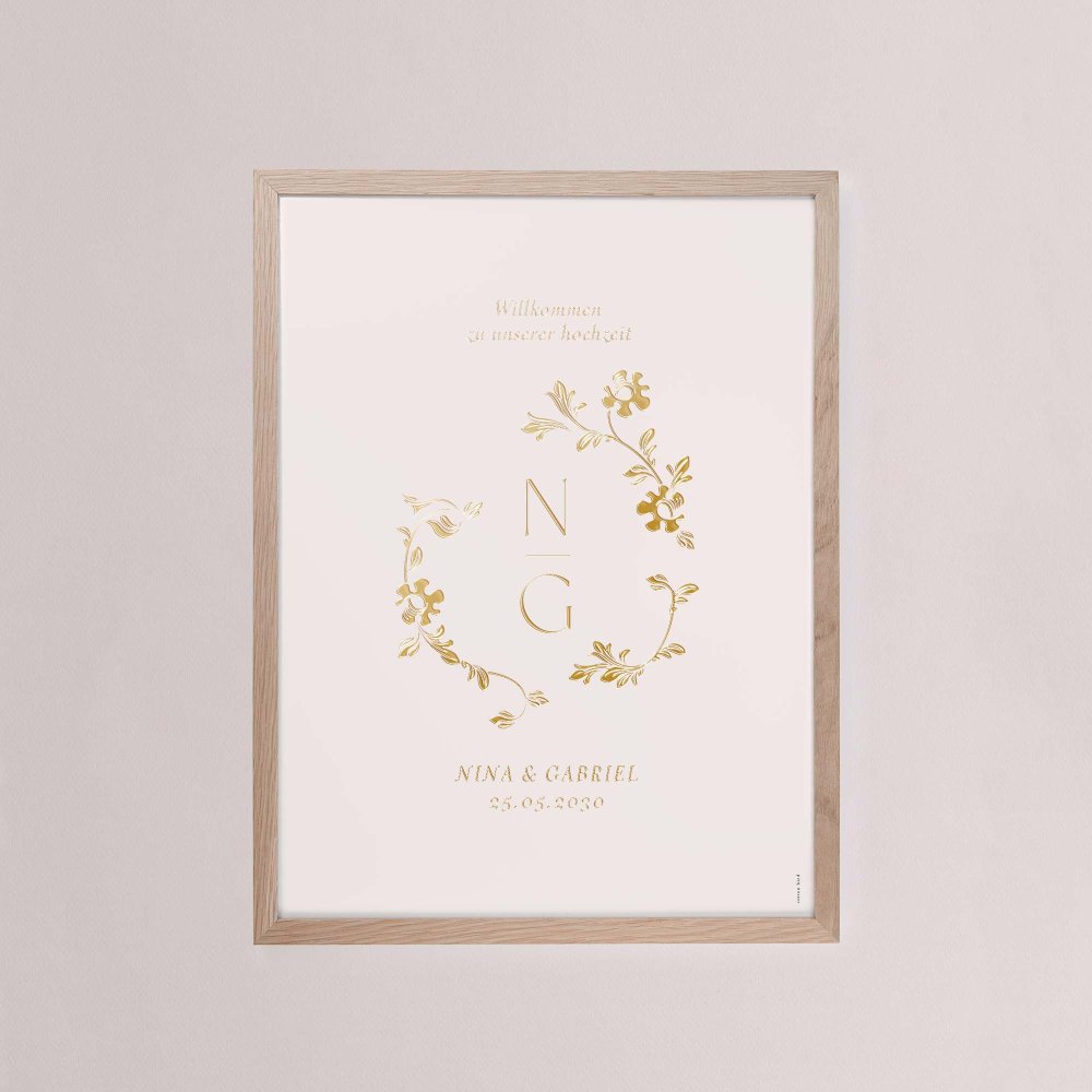 Unser Dekotipp: Für einen echten Blickfang empfehlen wir Ihnen, das Hochzeitsschild in einem Bilderrahmen mit Passepartout aufzustellen oder mit einem Posterhalter aufzuhängen. Ein kleiner Trick mit großer Wirkung!