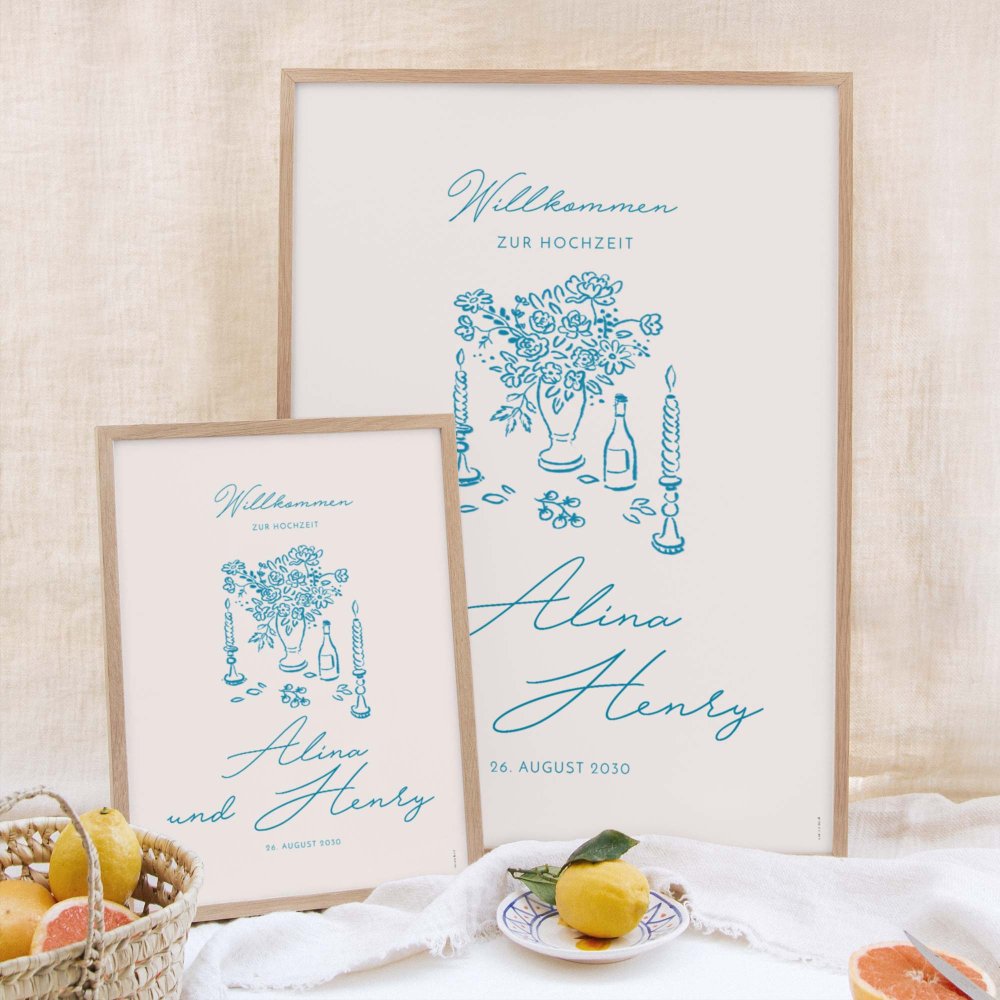 Unser Dekotipp: Für einen echten Blickfang empfehlen wir Ihnen, das Hochzeitsschild in einem Bilderrahmen mit Passepartout aufzustellen oder mit einem Posterhalter aufzuhängen. Ein kleiner Trick mit großer Wirkung!