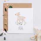 Das liebevoll illustrierte Lämmchen auf der Taufkarte Kleiner Hirte überbringt die Nachricht über die Taufe Ihres Kindes auf poetische Weise. Mit hübscher Typografie und einer farbenfrohen Illustration, die Glaube und Güte symbolisiert, ist diese Einladungskarte ideal, um Ihre Familie und Freunde zu dem glücklichen Ereignis einzuladen.