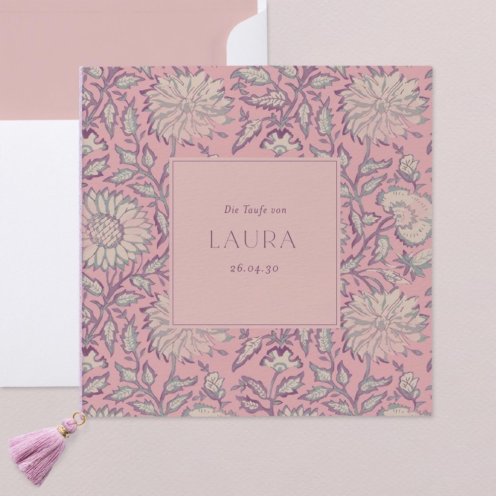 Die Taufeinladung Florentine zeichnet sich durch ihre Feinheit und Eleganz aus. Zarte Motive von Wildblumen in sanften, beruhigenden Farbtönen feiern die Taufe Ihres Kindes. Diese Einladungskarte ist die ideale Wahl für Eltern, die eine einzigartige Anzeige suchen.