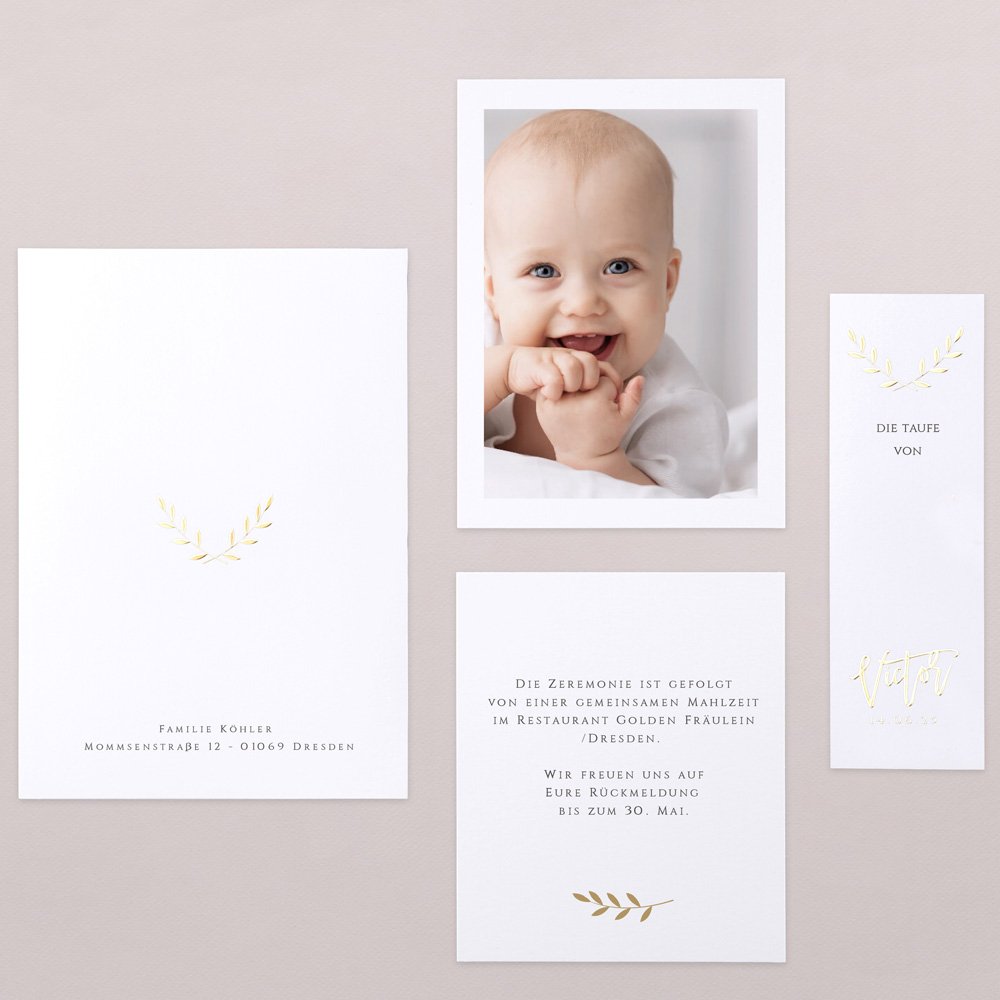 Taufkarte aus hochwertigem Mattpapier mit Soft-Touch Effekt und Goldfolienprägung.