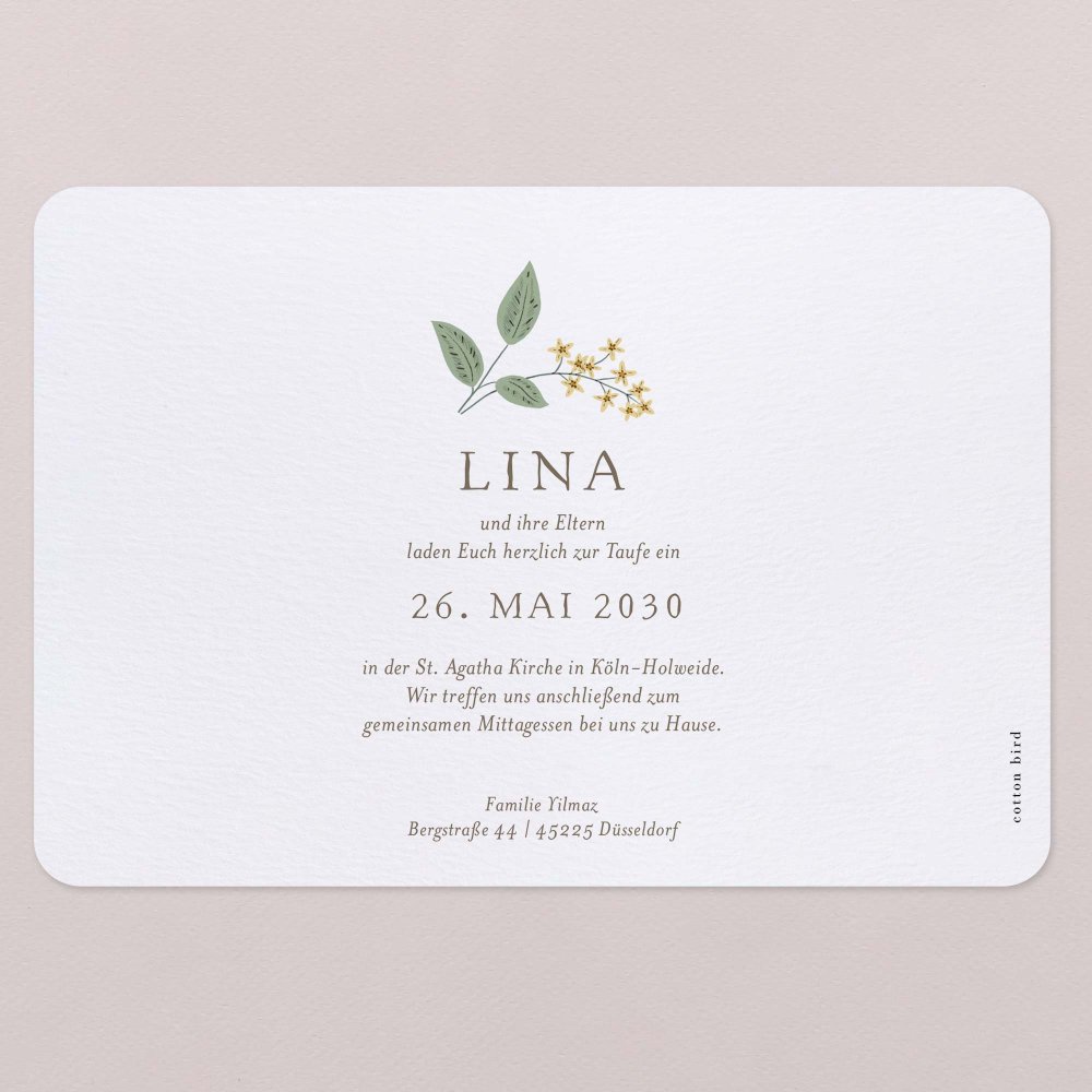 Schlicht und schön - diese große Taufeinladung im Querformat hat weich abgerundete Ecken und ist beidseitig personalisierbar.