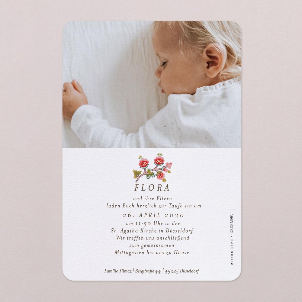 Schlicht und schön - diese große Taufeinladung im Hochformat hat weich abgerundete Ecken und ist beidseitig personalisierbar.