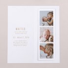 Das besondere Format dieser Taufeinladung wird Ihre Liebsten begeistern! Dieses Modell besteht aus einer hochformatige Klappkarte und einem Fotostreifen, der als Andenken aufbewahrt, an den Kühlschrank gepinnt oder als Lesezeichen benutzt werden kann.