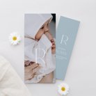Das besondere Format dieser Taufeinladung wird Ihre Liebsten begeistern! Dieses Modell besteht aus einer hochformatige Klappkarte und einem Fotostreifen, der als Andenken aufbewahrt, an den Kühlschrank gepinnt oder als Lesezeichen benutzt werden kann.