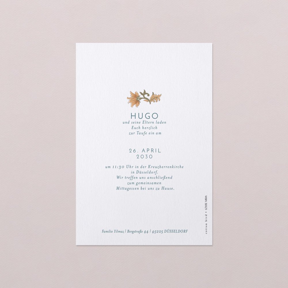 Diese schlichte Taufeinladung im Hochformat ist beidseitig personalisierbar.