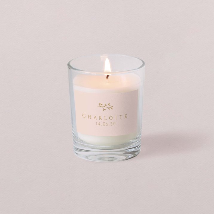 Bedanken Sie sich bei den Verwandten, die zur Taufe Ihres Kindes anwesend waren, mit dieser kleinen personalisierten Kerze. Der zarte Feigenduft wird Ihre Gäste noch lange an die gemeinsamen Momente dieses Tages erinnern.