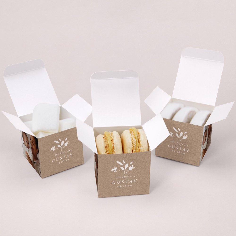 Gestalten Sie die Box mit dem Namen des Kindes, dem Datum der Tauffeier und einer kleinen Nachricht und sorgen Sie für Freude bei Ihren Liebsten.
