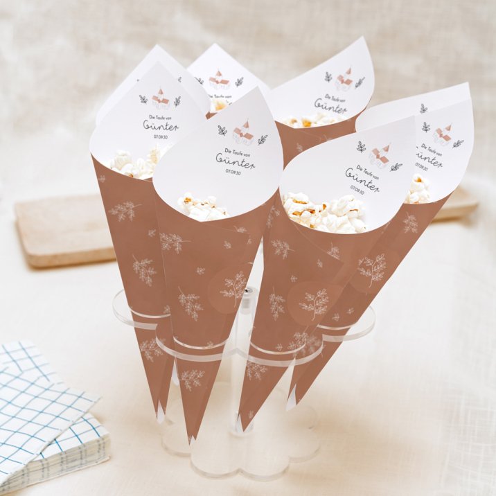 Verteilen Sie allerlei Leckerei in den individuell gestalteten Spitztüten auf den Tischen oder am Eingang. Ihre Gäste werden sich freuen!