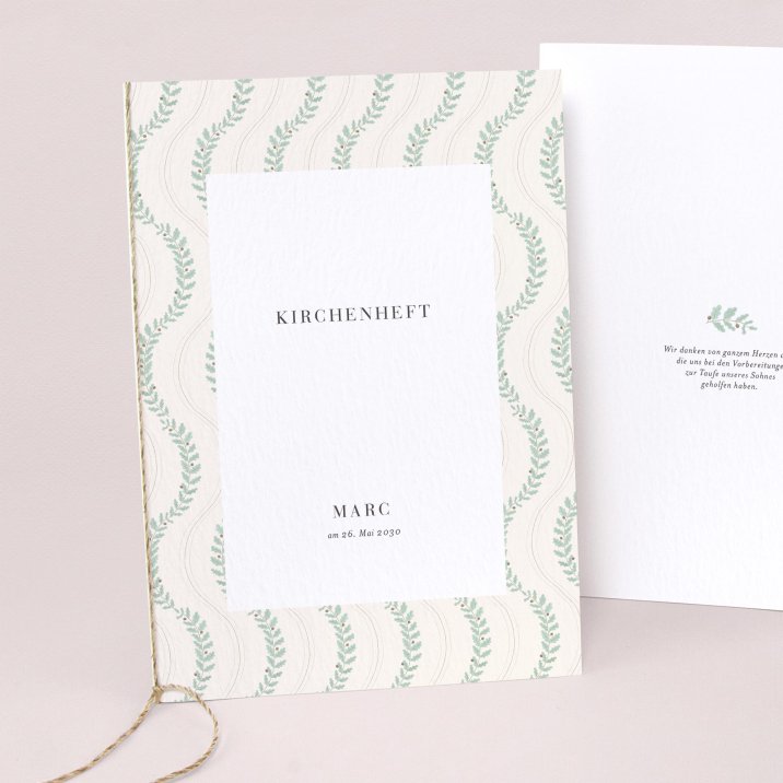 Unser Tipp: Bestellen Sie das Kirchenheft im passenden Design zu Ihren Einladungskarten und Ihrer Deko.