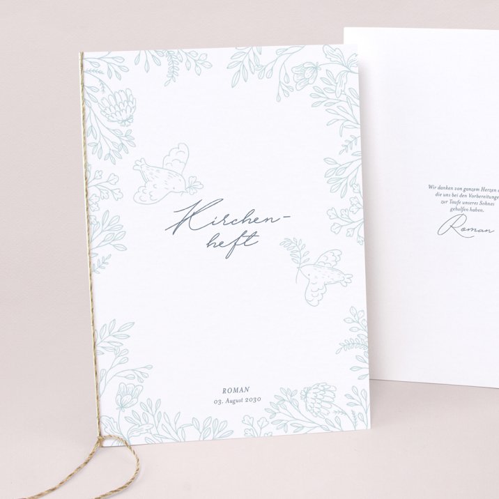 Unser Tipp: Bestellen Sie das Kirchenheft im passenden Design zu Ihren Einladungskarten und Ihrer Deko.