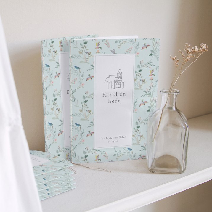 Unser Tipp: Bestellen Sie das Kirchenheft im passenden Design zu Ihren Einladungskarten und Ihrer Deko.