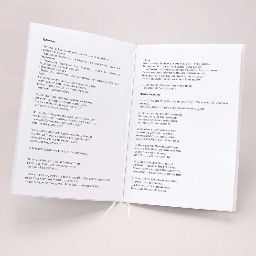 Unser Tipp: Bestellen Sie das Kirchenheft im passenden Design zu Ihren Einladungskarten und Ihrer Deko.