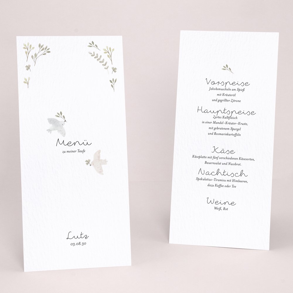 Tipp: Platzieren Sie die Menükarten entweder pro Sitzplatz oder pro Tisch und vervollständigen Sie so die Deko Ihrer Feier.