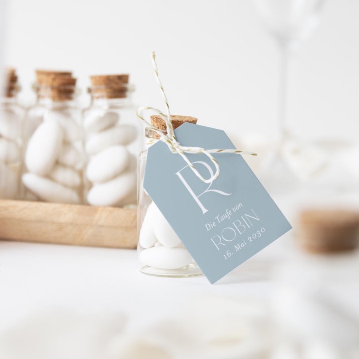Dekorieren Sie kleine Geschenke für Ihre Taufgäste mit diesen personalisierbaren Geschenkanhängern. Die hübschen Anhänger eignen sich hervorragend, um kleine Präsente, Geschenkboxen und andere Aufmerksamkeiten zu personalisieren.