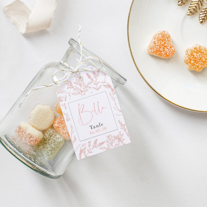 Dekorieren Sie kleine Geschenke für Ihre Taufgäste mit diesen personalisierbaren Geschenkanhängern. Die hübschen Anhänger eignen sich hervorragend, um kleine Präsente, Geschenkboxen und andere Aufmerksamkeiten zu personalisieren.