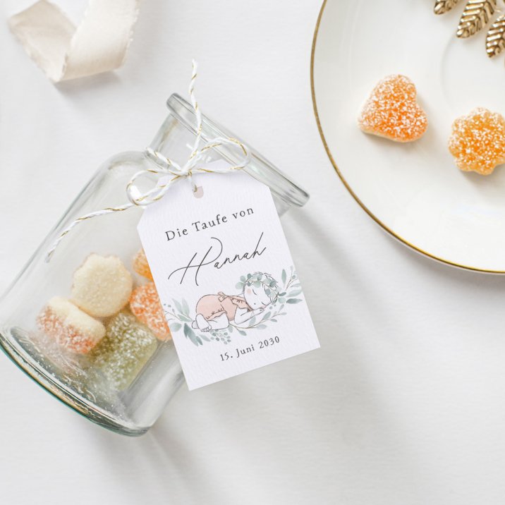 Dekorieren Sie kleine Geschenke für Ihre Taufgäste mit diesen personalisierbaren Geschenkanhängern. Die hübschen Anhänger eignen sich hervorragend, um kleine Präsente, Geschenkboxen und andere Aufmerksamkeiten zu personalisieren.
