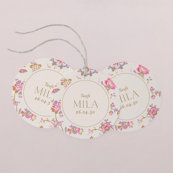 Dekorieren Sie kleine Geschenke für Ihre Taufgäste mit diesen personalisierbaren Geschenkanhängern. Die hübschen runden Anhänger eignen sich hervorragend, um kleine Präsente, Geschenkboxen und andere Aufmerksamkeiten zu personalisieren.