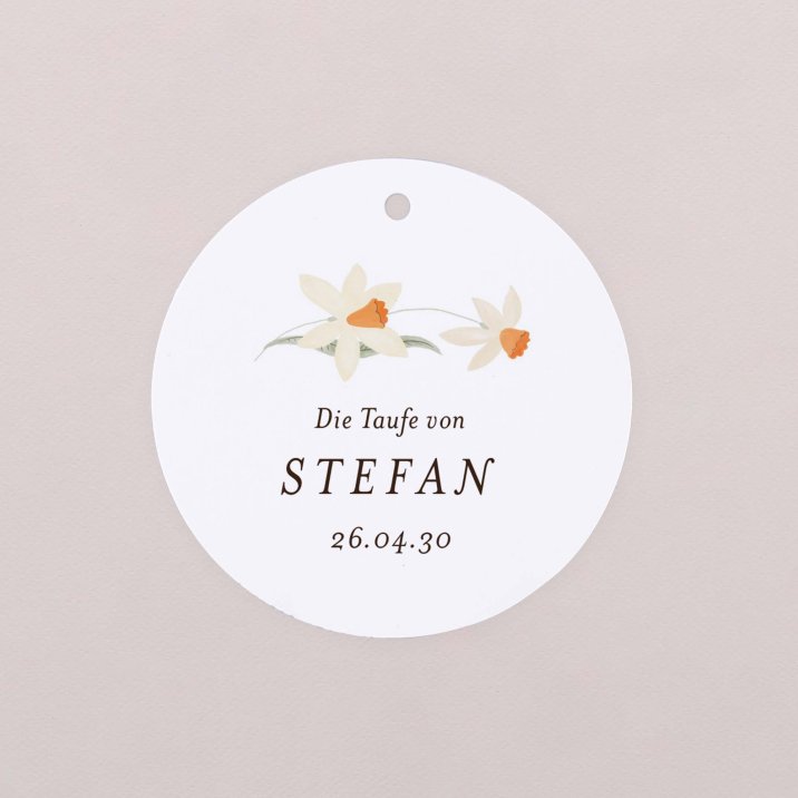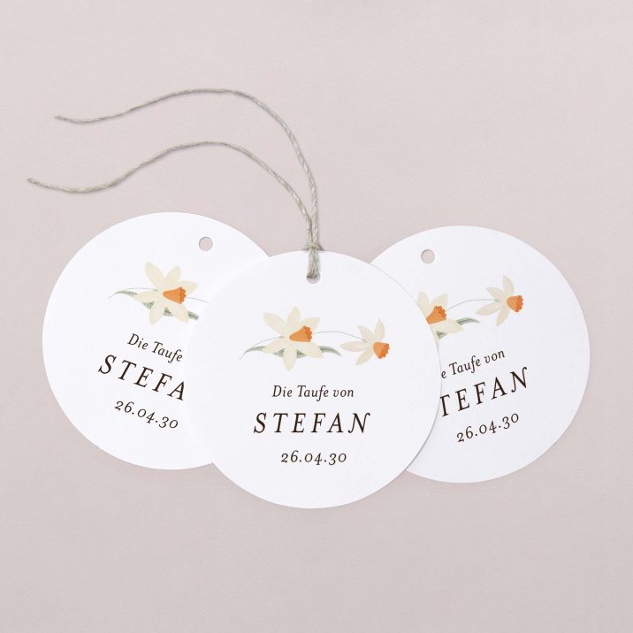Dekorieren Sie kleine Geschenke für Ihre Taufgäste mit diesen personalisierbaren Geschenkanhängern. Die hübschen runden Anhänger eignen sich hervorragend, um kleine Präsente, Geschenkboxen und andere Aufmerksamkeiten zu personalisieren.