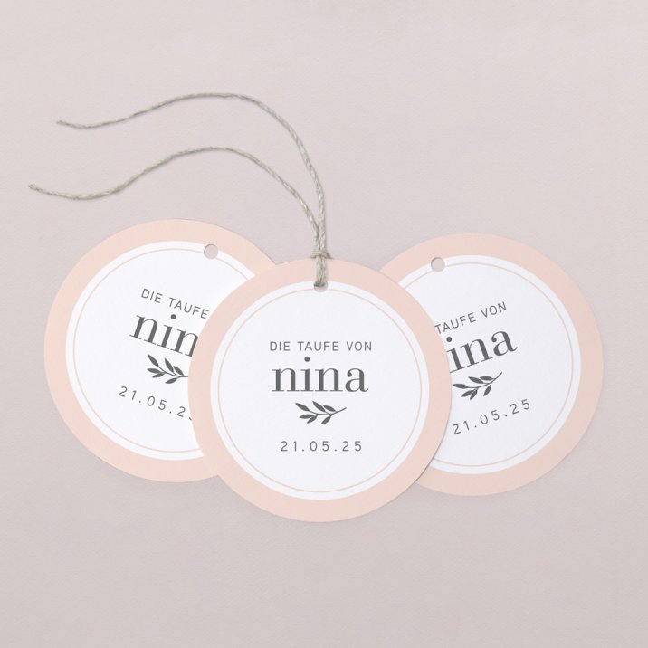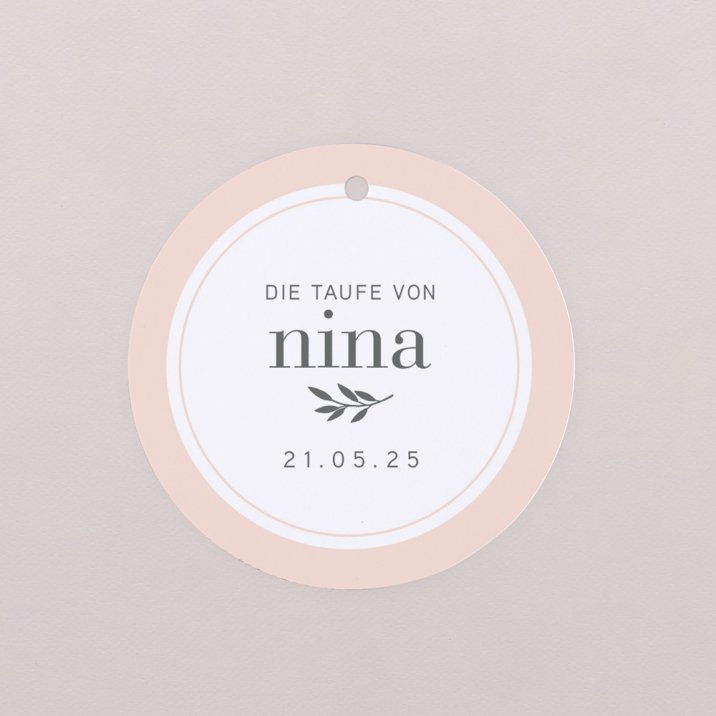 Dekorieren Sie kleine Geschenke für Ihre Taufgäste mit diesen personalisierbaren Geschenkanhängern. Die hübschen runden Anhänger eignen sich hervorragend, um kleine Präsente, Geschenkboxen und andere Aufmerksamkeiten zu personalisieren.