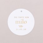 Dekorieren Sie kleine Geschenke für Ihre Taufgäste mit diesen personalisierbaren Geschenkanhängern. Die hübschen runden Anhänger eignen sich hervorragend, um kleine Präsente, Geschenkboxen und andere Aufmerksamkeiten zu personalisieren.