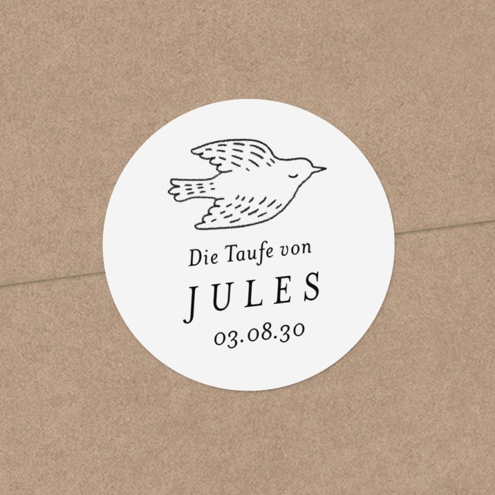 Bekleben Sie die Briefumschläge der Einladungskarten, Danksagungen oder kleine Geschenke mit unseren Stickern. Die Aufkleber lassen sich in wenigen Handgriffen mit dem Namen Ihres Kindes und dem Datum der Taufe gestalten.