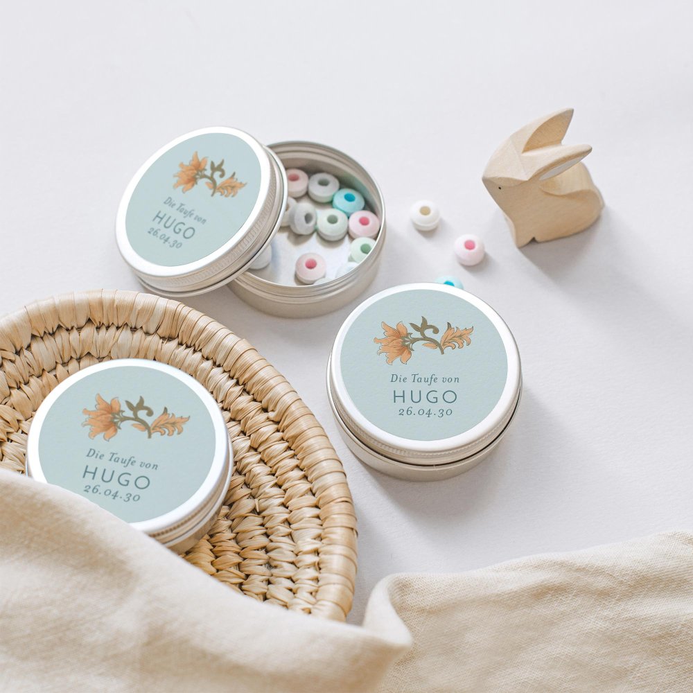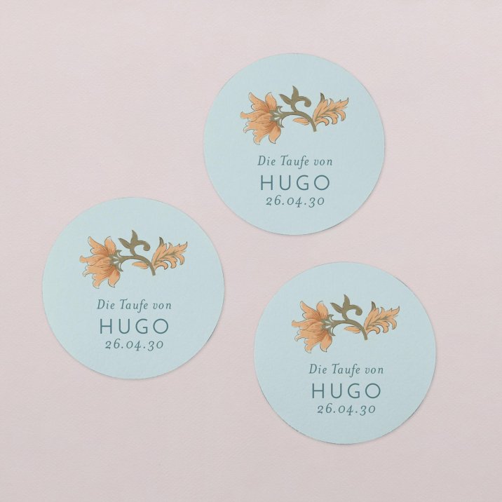Runden Sie Ihre Papeterie und Deko mit den passenden Aufklebern ab. Mit dem Namen des Taufkindes und einer persönlichen Notiz gestaltet, können Sie mit den großen runden Aufklebern die verschiedensten Artikel schmücken: Briefumschläge, Geschenke, Marmeladengläser, Kerzen, und vieles mehr...!