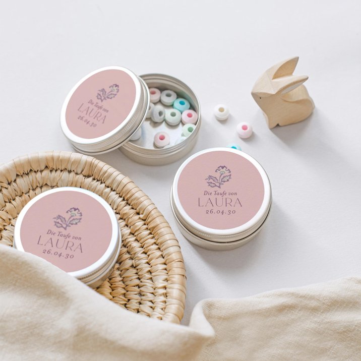 Runden Sie Ihre Papeterie und Deko mit den passenden Aufklebern ab. Mit dem Namen des Taufkindes und einer persönlichen Notiz gestaltet, können Sie mit den großen runden Aufklebern die verschiedensten Artikel schmücken: Briefumschläge, Geschenke, Marmeladengläser, Kerzen, und vieles mehr...!