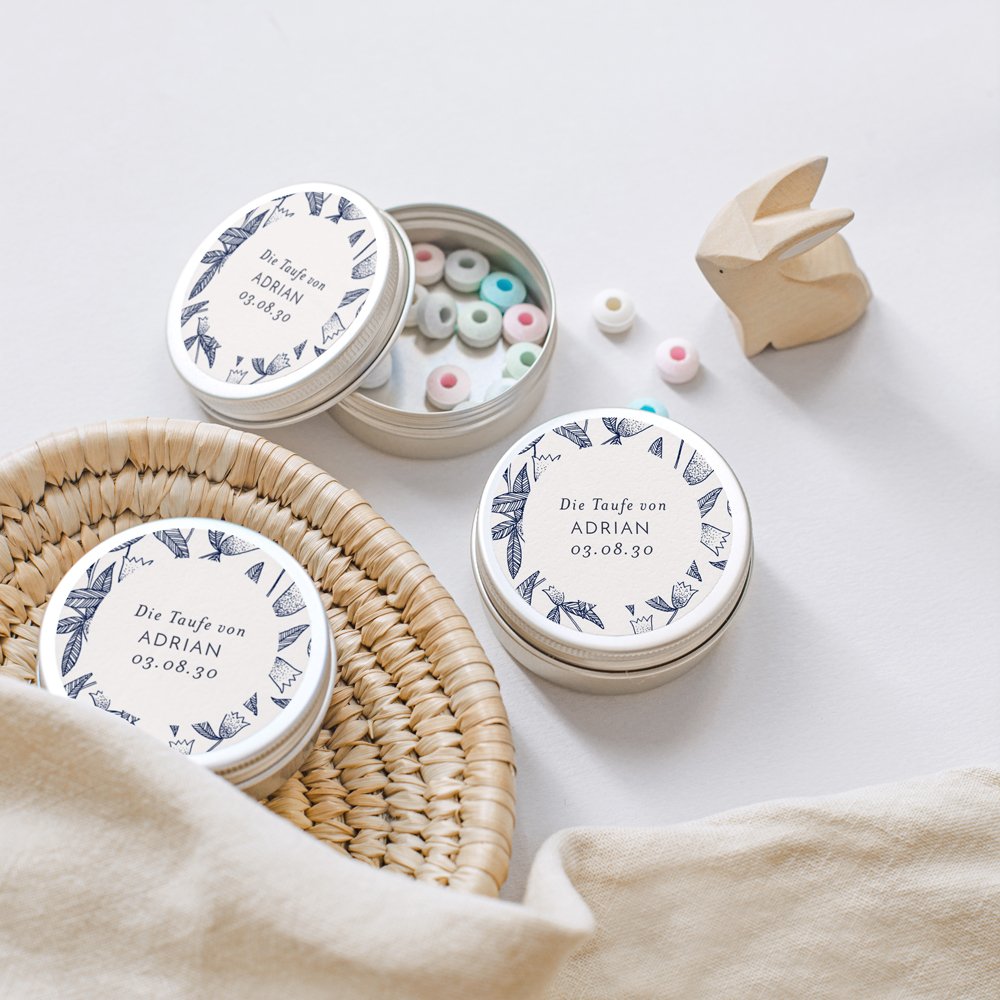 Runden Sie Ihre Papeterie und Deko mit den passenden Aufklebern ab. Mit dem Namen des Taufkindes und einer persönlichen Notiz gestaltet, können Sie mit den großen runden Aufklebern die verschiedensten Artikel schmücken: Briefumschläge, Geschenke, Marmeladengläser, Kerzen, und vieles mehr...!